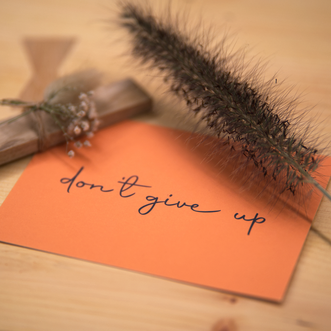 Postkarte „Don’t Give Up“, orange/blau – weiße Rückseite